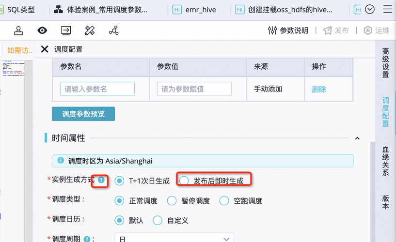 这里创建的调度任务可以设置发布后即时生成