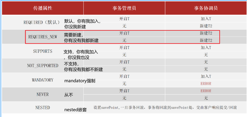REQUIRES_NEW译为需要新建,也就是给日志业务方法另外新建事务。