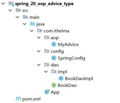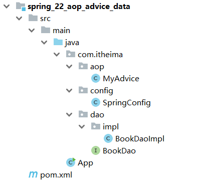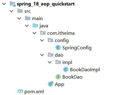 为了能更好的理解AOP的相关概念,我们准备了一个环境,整个环境的内容我们暂时可以不用关注,最主要的类为:BookDaoImpl