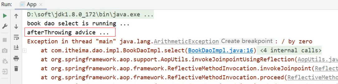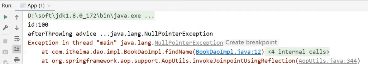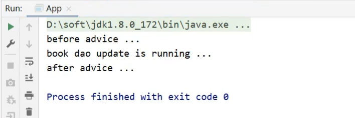 (2)在BookServiceImpl的四个方法中,update和delete只有打印没有计算万次执行消耗时间,但是在运行的时候已经有该功能,那也就是说update和delete方法都已经被增强,所以对于需要增强的方法我们起名叫切入点