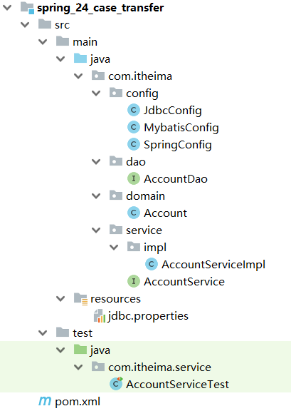 public interface AccountService { /** * 转账操作 * @param out 传出方 * @param in 转入方 * @param money 金额 */ //配置当前接口方法具有事务 public void transfer(String out,String in ,Double money) throws IOException; } @Service public class AccountServiceImpl implements AccountService { @Autowired private AccountDao accountDao; @Transactional public void transfer(String out,String in ,Double money) throws IOException{ accountDao.outMoney(out,money); //int i = 1/0; //这个异常事务会回滚 if(true){ throw new IOException(); //这个异常事务就不会回滚 } accountDao.inMoney(in,money); } }