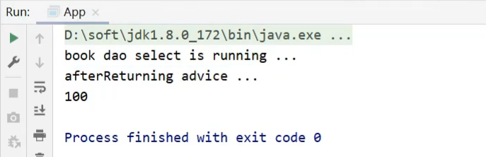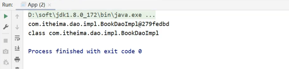 当在App类中从容器中获取bookDao对象后,分别执行其save,delete,update和select方法后会有如下的打印结果:
