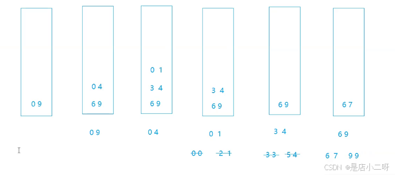 void MergeSortNonR(int* a, int n) { int* tmp = (int*)malloc(n * sizeof(int)); if (tmp == NULL) { perror("malloc fail!!!"); return; } int gap = 1; while (gap < n) { printf("gap:%2d->", gap); for (int i = 0; i < n; i += 2 * gap)//调正部分是跳过两组子序列,去到新的两组子序列中 { int begin1 = i, end1 = i + gap - 1; int begin2 = i + gap, end2 = i + 2 * gap - 1; //printf("[%2d,%2d][%2d, %2d] ", begin1, end1, begin2, end2); if (end1 >= n || begin2 >= n) { break; } if (end2 >= n) { end2 = n - 1; } printf("[%2d,%2d][%2d, %2d] ", begin1, end1, begin2, end2); //上面是传值 int j = begin1; //下面是插入,这里j下标很有讲究 while (begin1 <= end1 && begin2 <= end2) { if (a[begin1] < a[begin2]) { tmp[j++] = a[begin1++]; } else { tmp[j++] = a[begin2++]; } }//还有部分数据没有放入新数组中 while (begin1 <= end1) { tmp[j++] = a[begin1++]; } while (begin2 <= end2) { tmp[j++] = a[begin2++]; } memcpy(a + i, tmp + i, sizeof(int) * (end2 - i + 1));//可能是右边归并 } printf("\n"); gap *= 2; } free(tmp); }