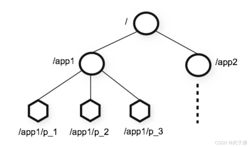 开发人员可以向这个节点写入数据,也可以在这个节点下创建子节点。