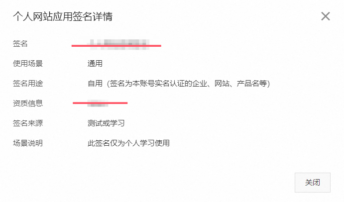- 在签名管理中申请签名,适用场景根据自己的需求填写。