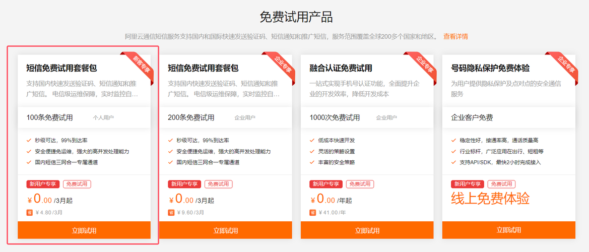 如果是新用户(未开通过阿里云短信服务),可以免费使用:https://free.aliyun.com/product/cloudcommunication-free-trial