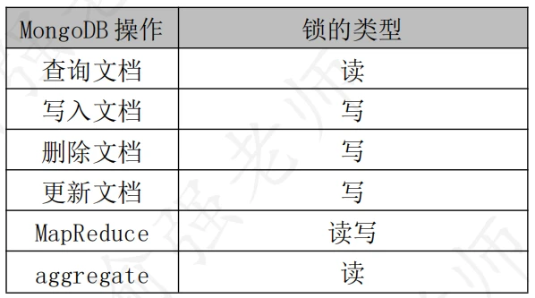 MongoDB在执行写操作时,WiredTiger存储引擎会在文档级别进行并发控制。换句话说在同一时间点上,多个写操作能够修改同一个集合中的不同文档;而当多个写操作修改同一个文档时,必须以序列化方式执行。这意味着如果当前文档正在被修改,其他写操作必须等待该文档上的写操作完成之后才能进行修改。对于大部分的文档读写操作,WiredTiger引擎使用的都是乐观锁;而在数据库和集合级别,WiredTiger使用的是意向锁。当WiredTiger存储引擎探测到两个操作之间发生了冲突,将会产生一个写冲突并将会重新执行操作。下表列出了MongoDB的操作与产生的锁类型。