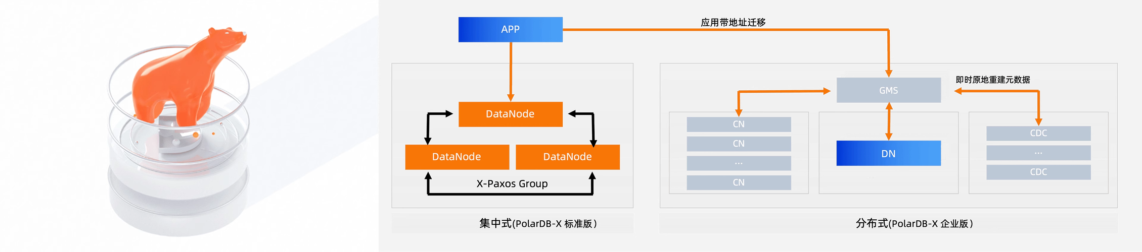 PolarDB分布式版 (PolarDB for Xscale,简称“PolarDB-X”) 是阿里云自主研发的高性能云原生分布式数据库产品,其采用 Shared-nothing 与存储计算分离架构,支持水平扩展、分布式事务、混合负载等能力,具备企业级、云原生、高可用、高度兼容 MySQL 系统及生态等特点。PolarDB-X 于2021年10月正式开源。