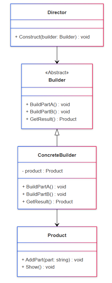 - 抽象建造者(Builder):定义构建产品的步骤。