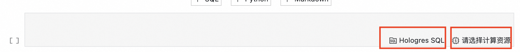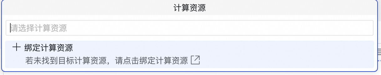 - 可点击SQL Cell的请选择计算资源,在弹出框下选择要绑定的计算资源,若您在MaxCompute下无资源,则需点击“+绑定计算资源”