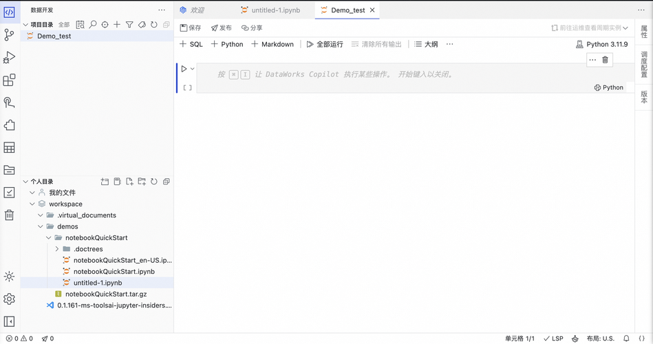 1. 在Notebook中,能够新增Python Cell,编写Python代码进行数据处理和开发等。