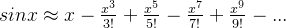 sinx的级数前n项累加和(按照题目要求直到最后一项的绝对值小于10^-5时停止),示例代码如下: