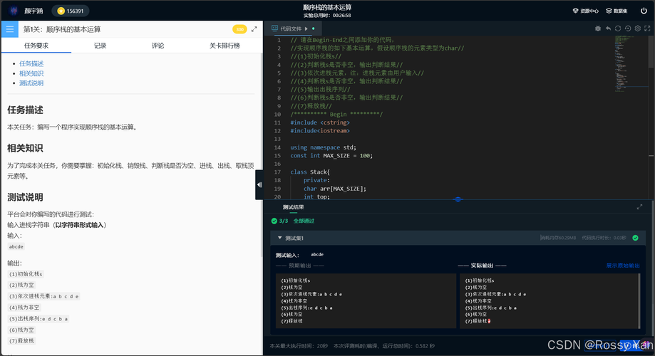 本关任务:编写一个程序实现顺序栈的基本运算。
