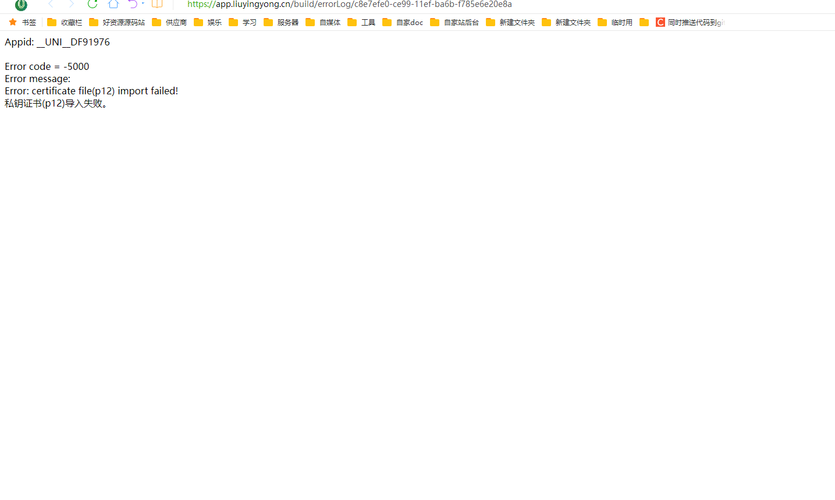 Appid: __UNI__DF91976 Error code = -5000 Error message: Error: certificate file(p12) import failed! 私钥证书(p12)导入失败。