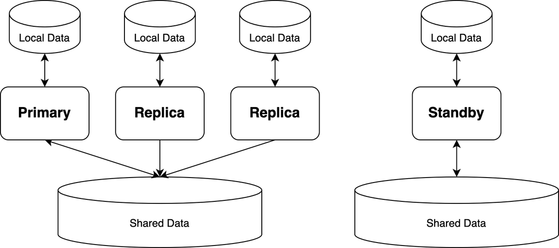 - 共享数据目录:位于共享存储上,被所有计算节点共享