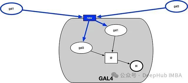 将这两个组件合并分析是因为它们之间的连接较为紧密。GAL3利用了GAL2的值A和XatWT_concat,以及GAL2的方法reshape。我们通过标记来自输入引用gal2的弧线来突出每个值或方法的使用位置。