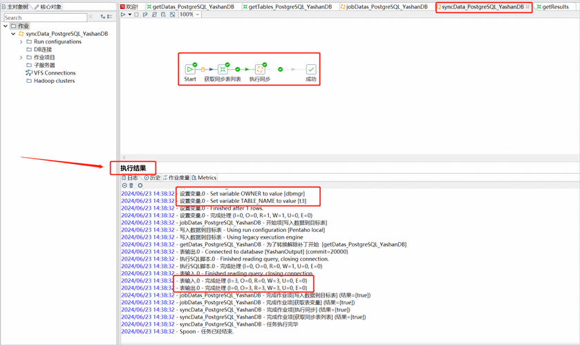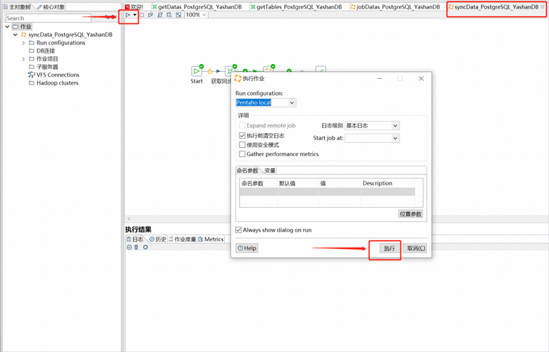 10、切换回syncData_PostgreSQL_YashanDB.kjb,执行运行即可。