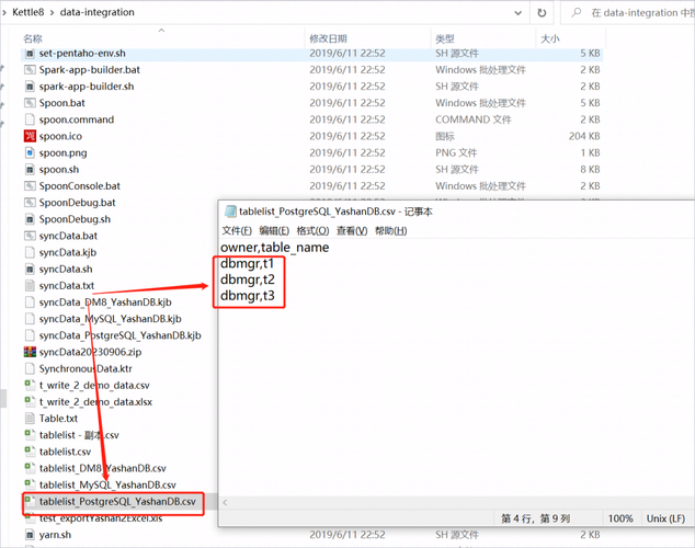 9、修改tablelist_PostgreSQL_YashanDB.csv,这个配置文件用于指定PostgreSQL需要迁移的库表名,注意这里需要和PostgreSQL的库表大小写保持一致,例如: