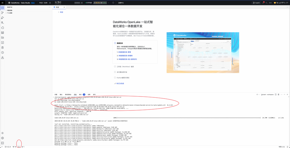 wget https://nodejs.org/dist/v20.19.0/node-v20.19.0-linux-x64.tar.xz tar xf node-v20.19.0-linux-x64.tar.xz mv /etc/dsw/node /etc/dsw/node14 mv node-v20.19.0-linux-x64 /etc/dsw/node bash <(curl -s https://dataworks-notebook-${REGION}.oss-${REGION}.aliyuncs.com/public-datasets/aone-release/dwcode-server/scripts/update.sh) 0.2.169