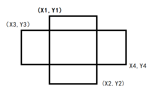 相对应的算法可以解释为 x3 < x1 && x2 < x4 && Y3 > Y1 && Y4 < Y2(纵向相交算法同理),两个图形的坐标反过来即可。