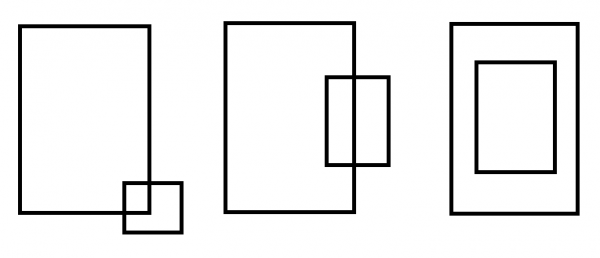相交重叠不存在角重叠的情况,需要通过坐标范围进行判断。