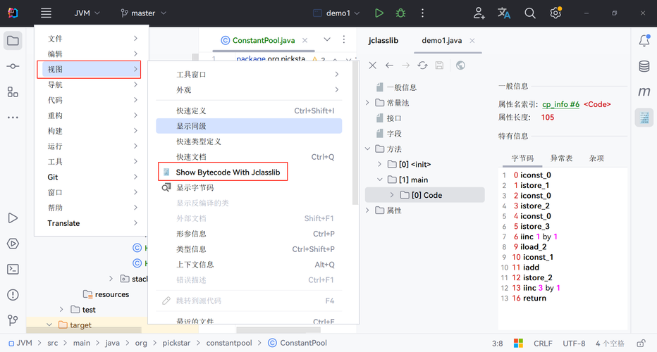 - jclasslib介绍:jclasslib可以直观地看到字节码文件各个部分