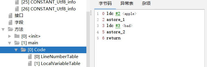 - 方法的作用:存放字节码指令,其Code属性存放字节码指令具体内容