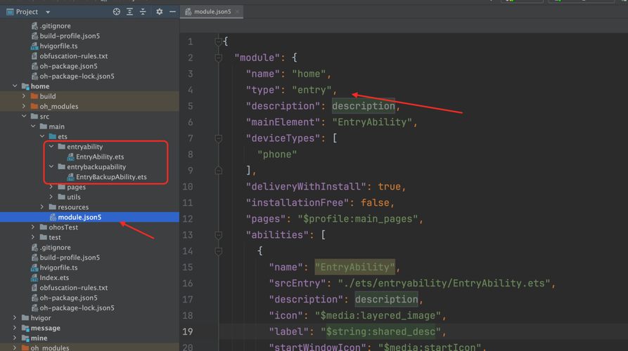 其实在module.json5中我们已经看出了这个差异,主模块中是多了两个Ability,一个是EntryAbility,一个是EntryBackupAbility,虽然说默认生成的自带EntryBackupAbility这个用于应用接入数据备份恢复的类,但是我们删除,也不会影响到我们的应用开发。