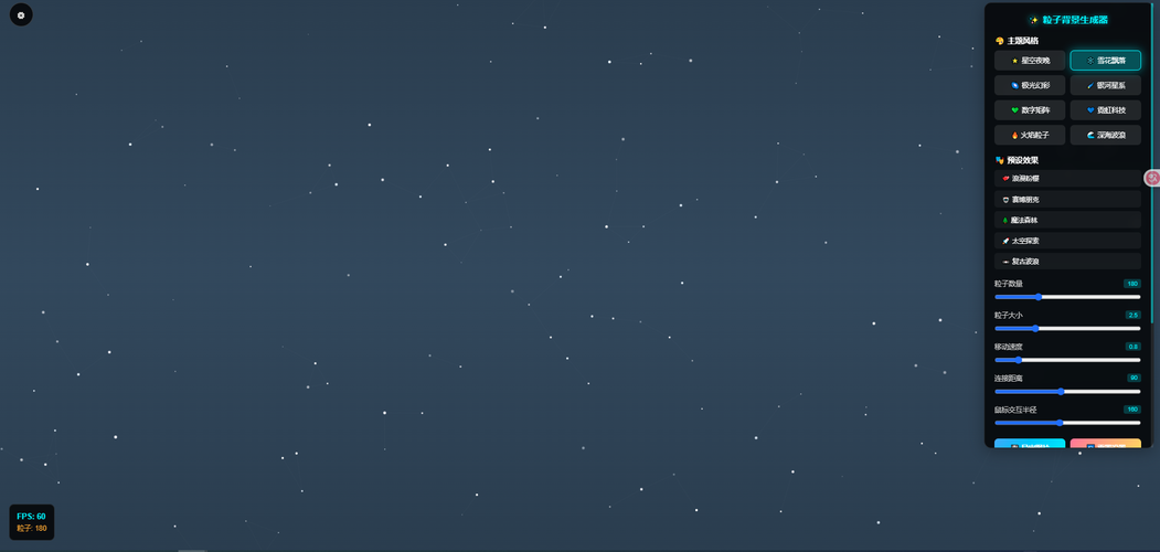 视觉效果已经不再是简单的装饰,它往往决定了用户的第一印象。尤其是动态背景,能够为网站增添动感和魅力,使访客在浏览过程中感到一种无形的吸引力。而在众多动态背景中,星空粒子背景无疑是最受欢迎的一种,它不仅能展现优雅的视觉效果,还能带给用户一种沉浸式的体验。