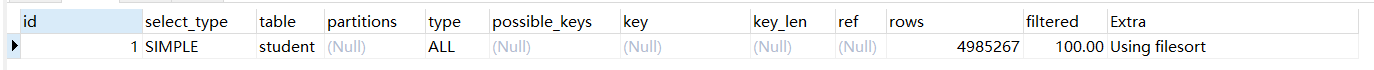 # 浅分页 EXPLAIN SELECT id, name, score from student order by score desc limit 5, 20; 执行效率:执行的为一个全表扫描,并且会额外执行Using filesort