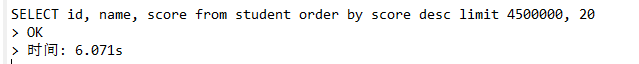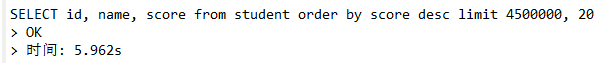 # 深分页 EXPLAIN SELECT id, name, score from student order by score desc limit 4500000, 20; 执行效率:和浅分页一样