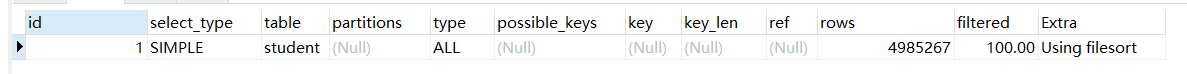 EXPLAIN SELECT id, name, score from student WHERE id < 10000000 AND score <= 100 ORDER BY score DESC LIMIT 20; 执行效率:type类型为range