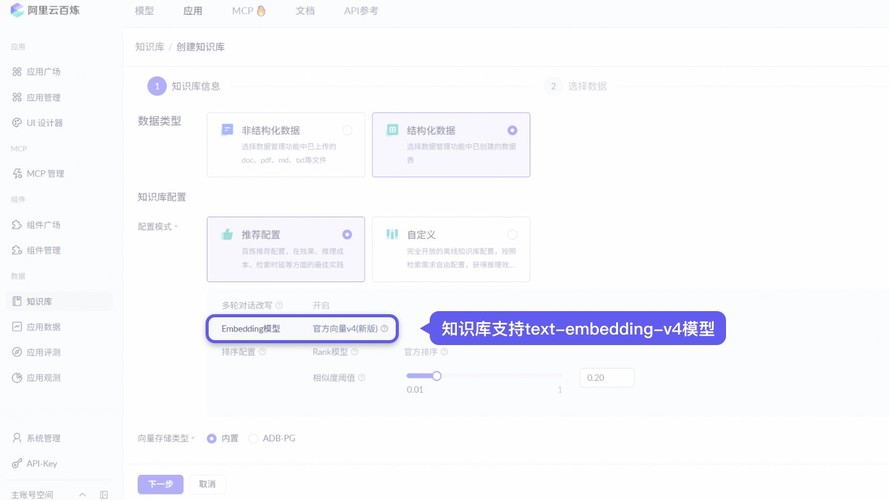 - 知识库支持 Text-Embedding-V4 模型,Text-Embedding-V4 模型在语种支持、代码片段向量化效果和向量维度选择等方面,相比v3模型进行了全面升级,适用于大部分场景。🔗创建入口