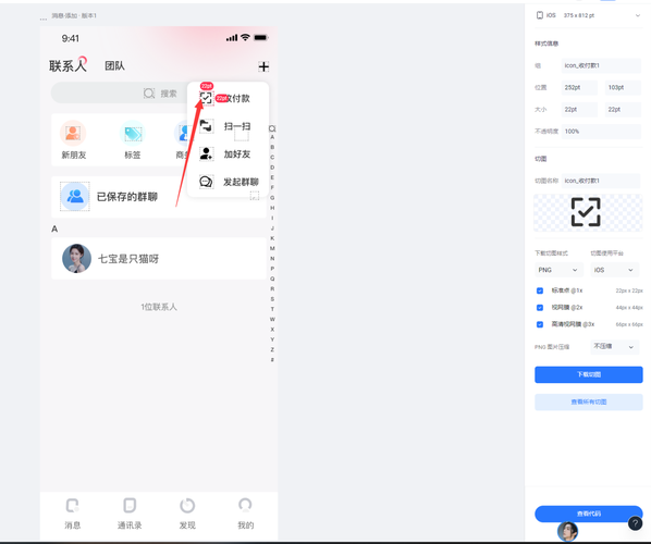 在工作区搜索 ‘消息页面 右上角按钮 功能菜单 加好友 扫一扫 收款’