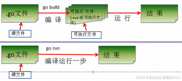 - 如果我们直接 go run go源代码,那么如果要在另外的一个机器上这么运行,也需要go开发环境,否则无法执行