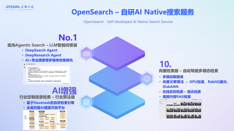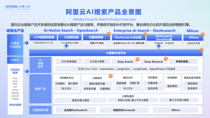 - 智能检索服务OpenSearch - 深度接入AI原生能力的自研AI Native搜索服务。此为'二纵'。
