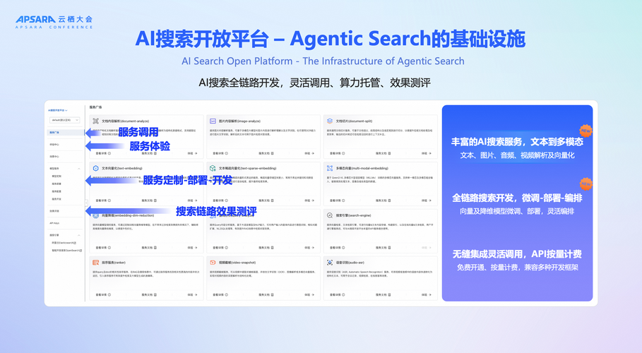 - 提供多模态解析、视频解析、向量化等全链路AI搜索服务,支持API调用与按量计费。