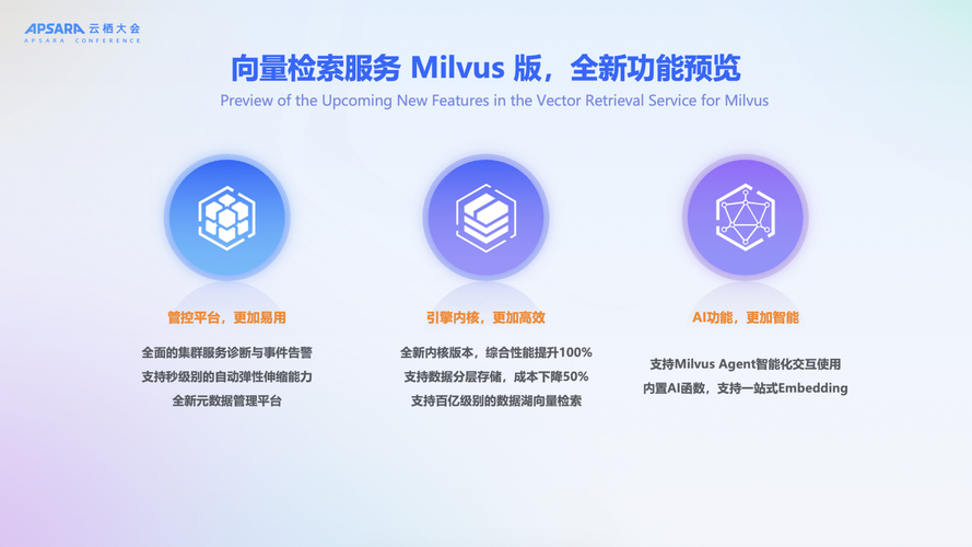 内核性能提升100%,支持百亿级数据湖检索,集成 Milvus Agent 实现智能化交互。