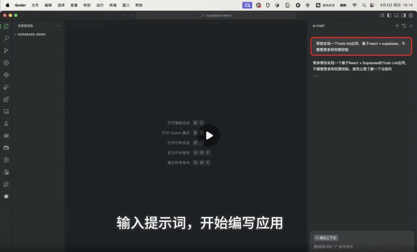 环境配置好后,可以直接在Qoder 中输入提示词开始编写应用。