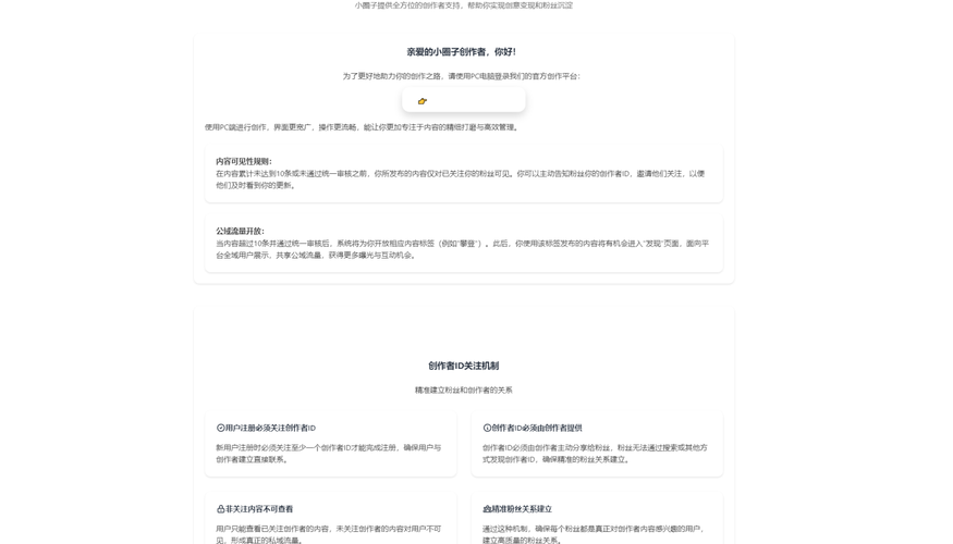 <ul class="space-y-2"> <li><router-link to="/features" class="text-gray-400 hover:text-white transition-fast">平台特色</router-link></li> <li><router-link to="/creators" class="text-gray-400 hover:text-white transition-fast">创作者价值</router-link></li> <li><router-link to="/monetization" class="text-gray-400 hover:text-white transition-fast">变现方式</router-link></li> <li><router-link to="/testimonials" class="text-gray-400 hover:text-white transition-fast">用户评价</router-link></li> </ul>
