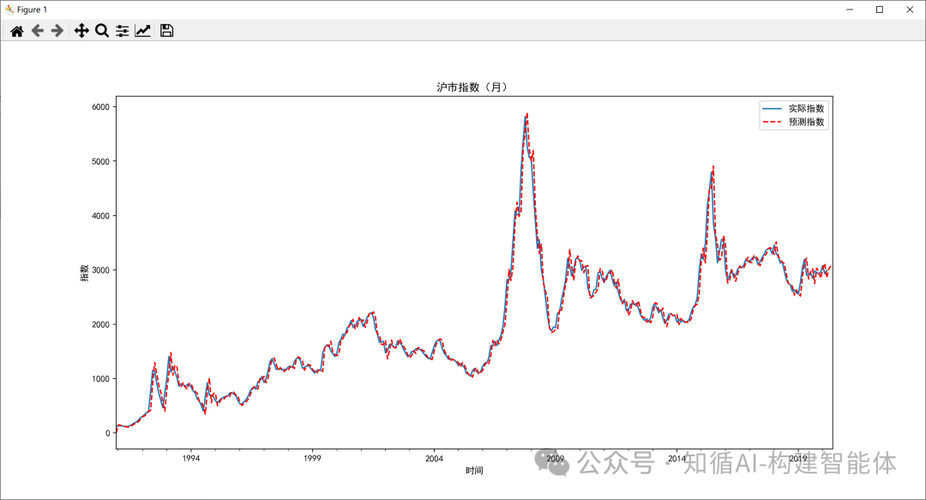# 沪市指数走势预测,使用时间序列ARMA模型 import numpy as np # 数值计算库 import pandas as pd # 数据处理库 import matplotlib.pyplot as plt # 绘图库 from statsmodels.tsa.arima_model import ARIMA # ARIMA模型(传统接口) import statsmodels.api as sm # 统计模型库 import warnings # 警告处理 from itertools import product # 用于生成参数组合 from datetime import datetime, timedelta # 日期时间处理 import calendar # 日历功能 # 忽略警告信息 warnings.filterwarnings('ignore') # 设置matplotlib中文字体显示 plt.rcParams['font.sans-serif'] = ['SimHei'] # 用来正常显示中文标签 plt.rcParams['axes.unicode_minus'] = False # 用来正常显示负号 # 数据加载 df = pd.read_csv('./shanghai_index_1990_12_19_to_2020_03_12.csv') # 只保留时间戳和价格两列 df = df[['Timestamp', 'Price']] # 将时间列转换为datetime类型,并设置为索引 df.Timestamp = pd.to_datetime(df.Timestamp) df.index = df.Timestamp # 数据探索 # print(df.head()) # 按照不同时间粒度重新采样:月、季度、年 df_month = df.resample('M').mean() # 按月重采样并取均值 df_Q = df.resample('Q-DEC').mean() # 按季度重采样并取均值(季度末为12月) df_year = df.resample('A-DEC').mean() # 按年重采样并取均值(年末为12月) # print(df_month) # 设置ARIMA模型参数范围 ps = range(0, 5) # 自回归阶数(p)的取值范围 qs = range(0, 5) # 移动平均阶数(q)的取值范围 ds = range(1, 2) # 差分阶数(d)的取值范围,这里固定为1阶差分 # 生成所有可能的参数组合 parameters = product(ps, ds, qs) parameters_list = list(parameters) print('parameters_list:', parameters_list) # 寻找最优ARIMA模型参数,即AIC值最小的模型 results = [] # 存储所有参数组合及其对应的AIC值 best_aic = float("inf") # 初始化最佳AIC为正无穷 # 遍历所有参数组合 for param in parameters_list: try: # 使用SARIMAX模型(包含季节因素的ARIMA扩展) model = sm.tsa.statespace.SARIMAX( df_month.Price, # 时间序列数据 order=(param[0], param[1], param[2]), # (p, d, q)参数 # seasonal_order=(4, 1, 2, 12), # 季节性参数(P, D, Q, S),此处被注释掉 enforce_stationarity=False, # 不强制要求平稳性 enforce_invertibility=False # 不强制要求可逆性 ).fit() except ValueError: print('参数错误:', param) continue aic = model.aic # 获取模型的AIC值 # 如果当前模型的AIC更小,则更新最佳模型 if aic < best_aic: best_model = model best_aic = aic best_param = param results.append([param, model.aic]) # 保存当前参数和AIC # 输出最优模型摘要信息 print('最优模型: ') print(best_model.summary()) # 准备预测未来数据 df_month2 = df_month[['Price']] # 只保留价格列 future_month = 3 # 预测未来3个月 # 获取最后一个月的时间 last_month = pd.to_datetime(df_month2.index[len(df_month2)-1]) date_list = [] # 存储预测的日期 # 生成未来3个月的日期 for i in range(future_month): # 计算下个月有多少天 year = last_month.year month = last_month.month if month == 12: # 如果是12月,则下个月是明年1月 month = 1 year = year + 1 else: month = month + 1 # 获取下个月的天数 next_month_days = calendar.monthrange(year, month)[1] # 计算下个月的日期 last_month = last_month + timedelta(days=next_month_days) date_list.append(last_month) # print('date_list=', date_list) # 创建未来3个月的空DataFrame,用于存储预测结果 future = pd.DataFrame(index=date_list, columns=df_month.columns) # 将未来日期合并到原始数据中 df_month2 = pd.concat([df_month2, future]) # 使用最优模型进行预测 # get_prediction方法返回预测区间,我们使用predicted_mean获取点预测值 df_month2['forecast'] = best_model.get_prediction( start=0, # 从第一个数据点开始 end=len(df_month2) # 到最后一个数据点(包括未来预测点) ).predicted_mean # 绘制沪市指数预测结果 plt.figure(figsize=(30, 7)) # 设置图形大小 # 绘制实际指数曲线 df_month2.Price.plot(label='实际指数') # 绘制预测指数曲线(红色虚线) df_month2.forecast.plot(color='r', ls='--', label='预测指数') plt.legend() # 显示图例 plt.title('沪市指数(月)') # 设置标题 plt.xlabel('时间') # 设置x轴标签 plt.ylabel('指数') # 设置y轴标签 plt.show() # 显示图形