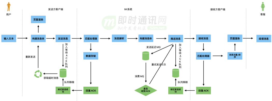相较于普通web系统,IM系统的消息数据流转链路更长、更复杂。从客户端到服务端,再从服务端到另一个客户端,任何一个环节的故障都可能导致消息延迟、丢失、乱序或重复,从而影响用户体验。