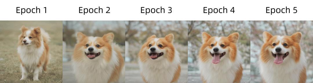 - 训练步数:5 个 epoch * 50 次重复 = 250 步