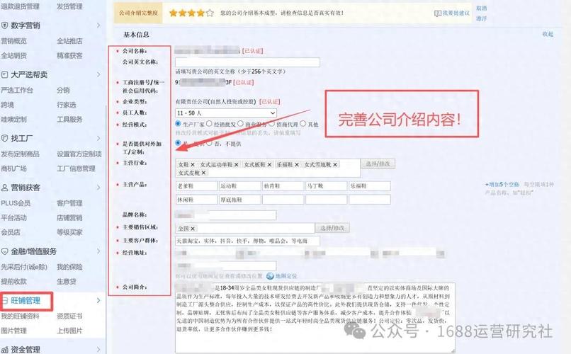 1.完善公司介绍,建立专业形象,企业信息的完整性和真实性是建立买家信任的第一步。在1688店铺中,务必完善公司相关信息,包括: