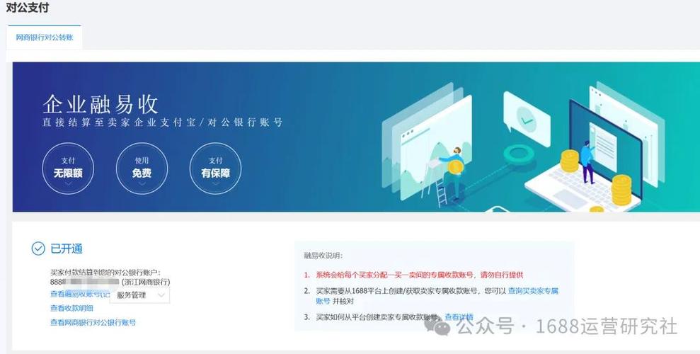 3.关联收款账户,便捷资金管理,资金流转是1688店铺运营的核心环节。在1688平台上,关联多种收款账户能够满足不同买家的支付需求,绑定支付宝和企业对公适合不同的交易方式。