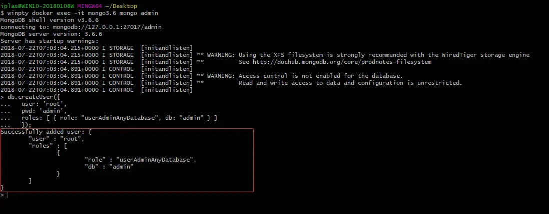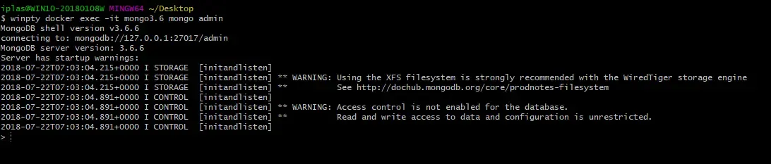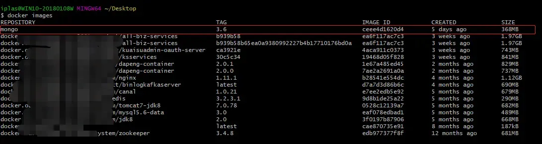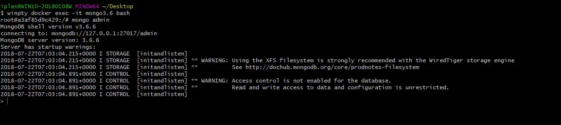 winpty docker exec -it mongo3.6 mongo -u 用户名 -p 密码 host:port/数据库名称 - 备份远程mongo数据库到本地docker中