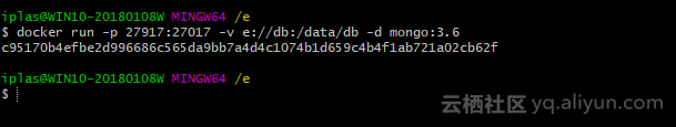 docker run -p 27917:27017 -v e://db:/data/db -d mongo:3.6