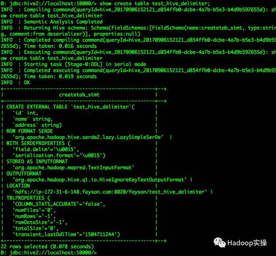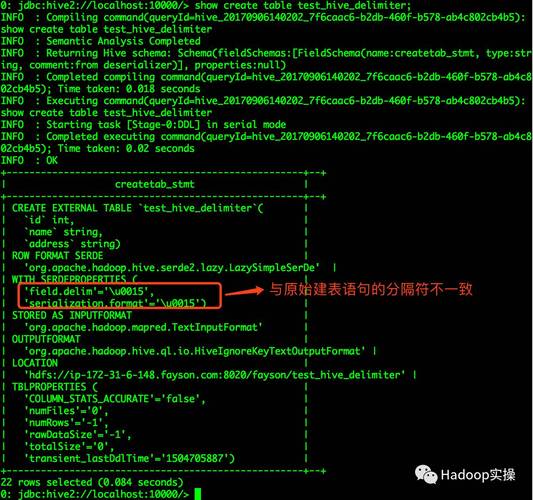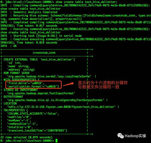 通过命令show create table test_hive_delimiter查看建表语句如下: