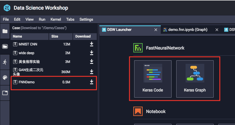 进入DSW,目前只有KerasCode和KerasGraph两个Kernel实现了FastNeuralNetwork功能。