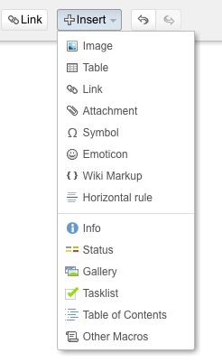 This will add an extra item to the second group of options in the menu, depending on the weight of the web item.  The linkId must be the name of the macro you have defined in your plugin.xml file. When your new menu option is clicked, it will automatically open the Macro Browser with the Insert Macro page of your macro.